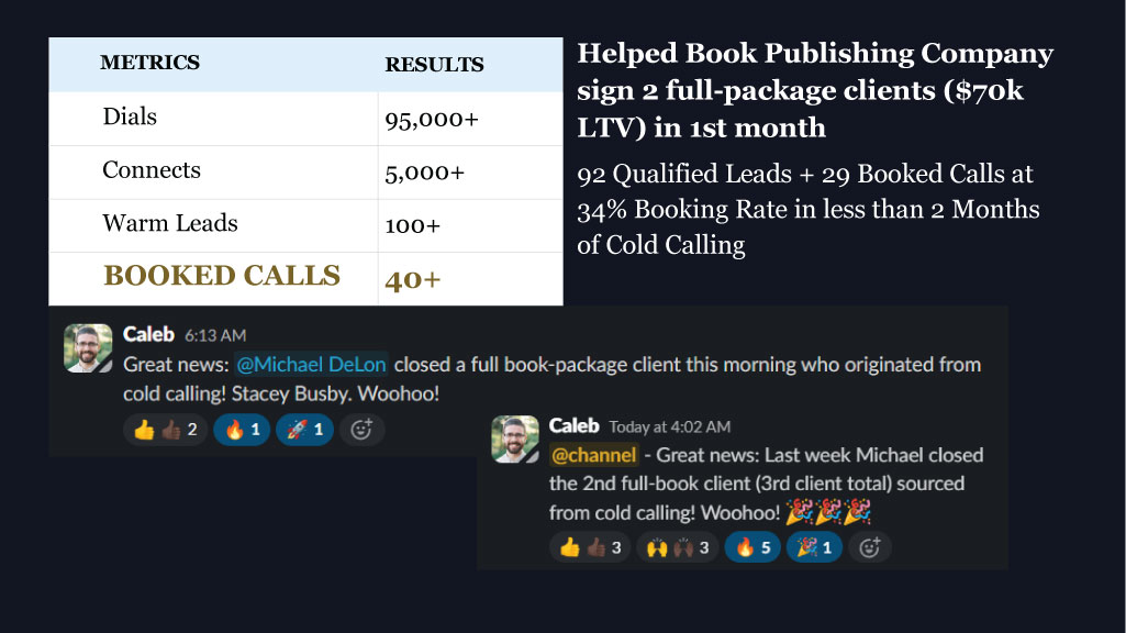 Helped Book Publishing Company sign 2 full-package clients ($70k LTV) in 1st month