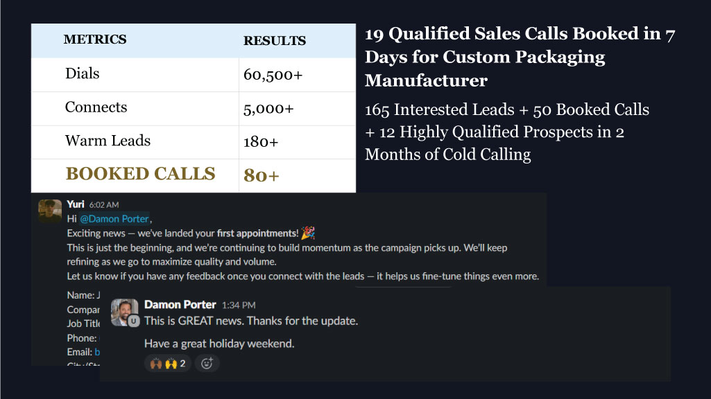 19 Qualified Sales Calls Booked in 7 Days for Custom Packaging Manufacturer